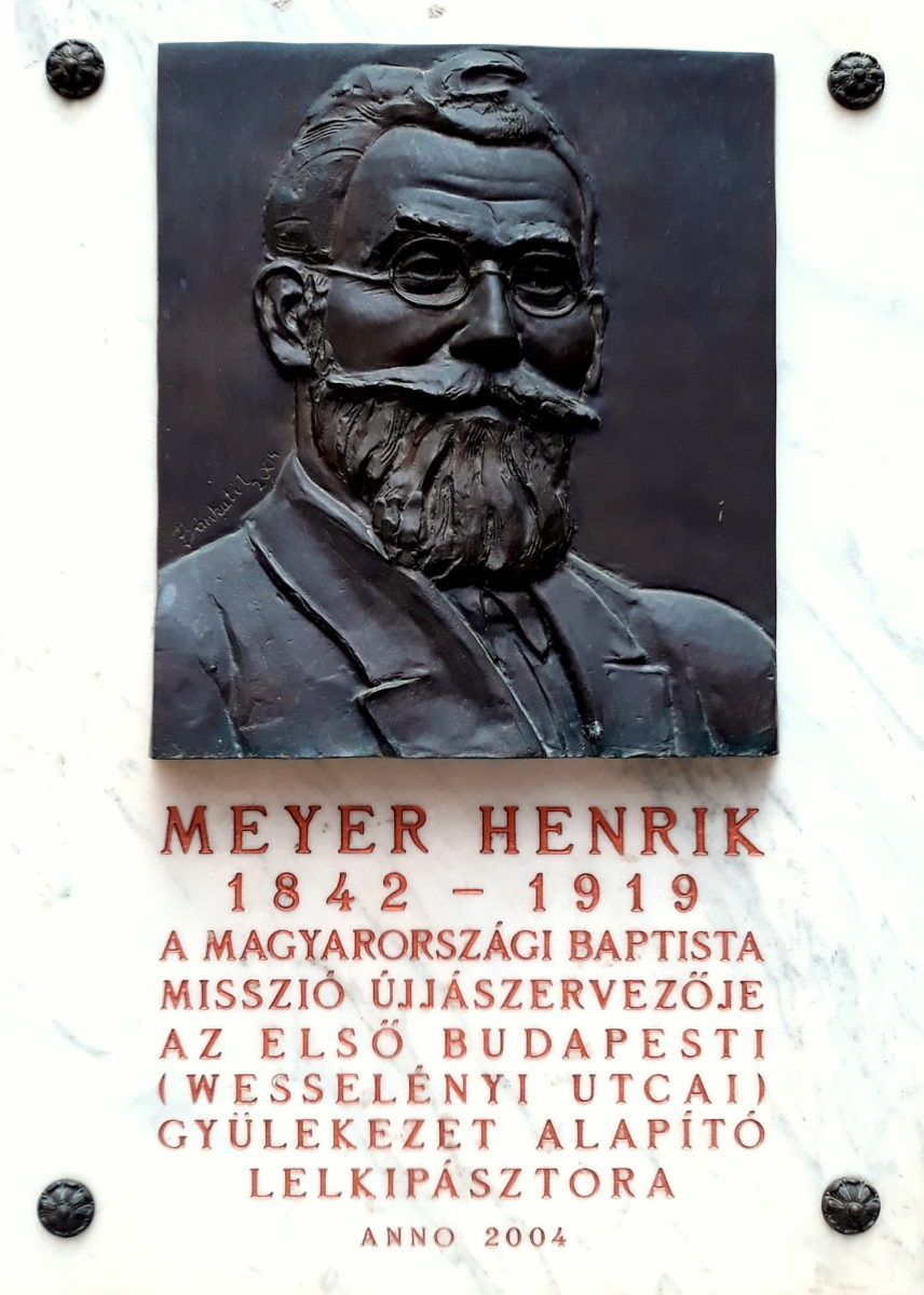A tanácskozás helyéül választott templom egyébként történelmi jelentőségű. A Wesselényi utcai gyülekezet alapító lelkipásztora, Meyer Henrik (1842–1919) ugyanis 100 esztendővel ezelőtt lépett át az örökkévalóságba. Róla is megemlékeztünk tanácskozásunk során. Az általa épített templom falán található dombormű és munkásságát felidéző emléktábla előtt egy hálakoszorút elhelyezve emlékeztünk a baptista történelem kimagasló alakjára és a Kárpát-medence különböző népei felé végzett evangéliumi ugartörő tevékenységére.