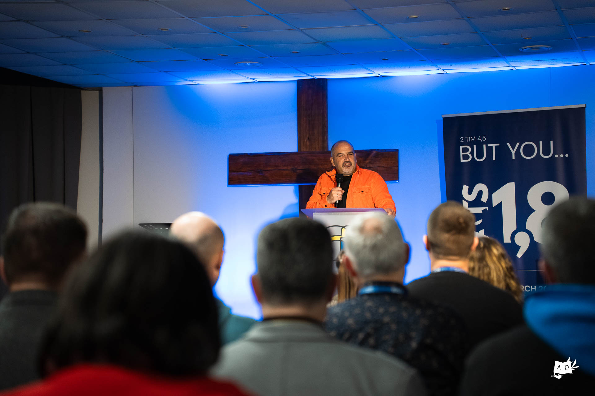 Szombat reggel a plenáris előadást Pavel Coufal, a Cseh Baptista Szövetség elnöke tartotta a 2Tim 4,1–8 alapján. Az igei bátorítás arról szólt, mit jelent ma – egy pogány világhoz hasonló közegben – hűségesen megállni Isten előtt, és hirdetni az evangéliumot. Pál apostol újra és újra bátorította Timóteust, mert tudta: nem könnyű egy olyan világban hirdetni az igazságot, ahol az emberek keveset tudnak Isten dolgairól, és ahol a gyülekezet fogalma is sokak számára ismeretlen. A kelet-közép-európai valóságban is gyakori az értetlenség, a vallási keveredés, a „valamizmus” – amelyben némi kereszténység keveredik reinkarnációval, buddhizmussal, ködös spiritualitással. Pál azonban azt mondja: „Te azonban…!” – vagyis: állj meg hűségesen, tarts ki a szolgálatban, végezd el a futásodat! Az ige hirdetése nem csupán a lelkészek feladata – minden hívő küldetése, hogy bizonyságot tegyen arról, aki meghalt a bűneinkért, és feltámadt a harmadik napon. Lehet ezt szószékről vagy akár egy kávé mellett is tenni – a lényeg a készség, hogy „alkalmas és alkalmatlan időben” is készen legyünk az ige hirdetésére. Nem manipulálni kell, nem nyomást gyakorolni – hanem szeretettel, igazsággal bátorítani, inteni. A valódi változás a szívben születik meg, nem kívülről erőltetve. Imádkoznunk kell azért, hogy készen legyünk, amikor eljön az idő: „Hirdesd az igét, állj elő vele!” Az apostol így búcsúzik: „A nemes harcot megharcoltam, futásomat elvégeztem, a hitet megtartottam.” A cél: hűségesnek lenni mindhalálig, és tiszta szívvel, tiszta gondolatokkal végezni el a ránk bízott szolgálatot.