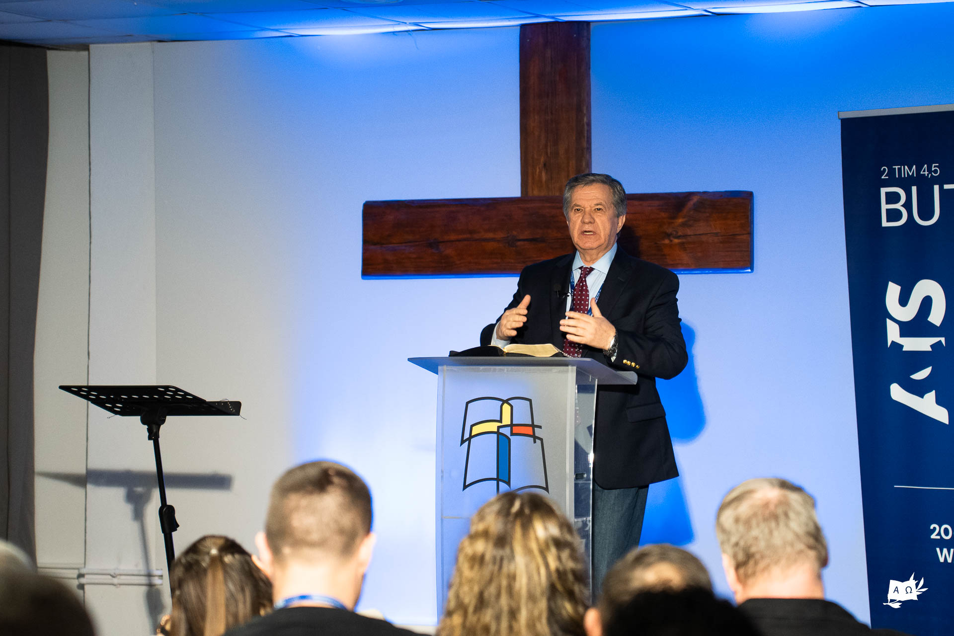 A délutáni órákban a konferencia résztvevői rövid városnézésen megcsodálhatták a lengyel főváros óvárosát, majd este a varsói First Baptist Church istentiszteletén vettek részt, ahol Chris Cook, a Future Leaders Foundation missziós szervezet vezetője, lelkész hirdette Isten igéjét a 2Tim 3 alapján. „A világ változik – de te maradj hűséges!” – igei bátorítása a nehéz időkben való kitartásról szólt, különös hangsúlyt helyezve arra a kérdésre, hogyan lehet hűséges tanítványként megállni a zűrzavaros és erkölcsi homályba borult világban. A prédikáció elején a világosság és a köd metaforáját használta: egy világítótorony fényt, hangot és irányt ad – mégis, a köd jön. „Ma is igaz: lehet, hogy hirdetjük Krisztust, ragyog a fényünk – de a köd, a lelki zűrzavar, a relativizmus és az istentelenség így is eláraszt bennünket.” Az igehirdetés középpontjában Pál bátorítása Timóteushoz állt: „De te, Timóteus…” – azaz: ne sodródj, hanem maradj meg abban, amit tanultál, élj hitelesen, és ne engedd, hogy a világ formáljon téged! „A tanúságtétel nehéz időkben is hűséget kíván – olyan napokon is, amikor a világ ezt gyengeségnek látja.” Ma sokféle „istentiszteleti forma” jelenik meg, amely látszólag Istenről szól, de megtagadja annak erejét. A kereszt és a feltámadás – az evangélium lényege – nélkül ezek csak üres vallásos beszédek. „Isten igéje élő és ható. A Szentírás Isten lehelete – ahogyan az emberi élet is az ő leheletéből fakadt. És ahogyan fizikailag is fájdalmaink jelzik, hogy élünk, úgy a lelki fáradtságaink is Istenhez hajtanak, aki igéjén keresztül új életet lehel belénk.”