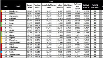 A nemzetközi Open Doors szervezet, mely a világszerte üldözött keresztények segítésére, helyzetük elemzésére és évenkénti jelentések kiadásával világméretű mozgósításra, összefogásra vállalkozik immár 25 év óta, néhány napja nyilvánosságra hozta 2017. évi jelentését az üldözés 2016. évi világhelyzetéről. Minden évben beszámolunk Olvasóinknak a legújabb adatokról, amelyek nemhogy csökkennének, hanem évente emelkednek szomorú spirálban. Ma már azt kell írnunk, hogy a világon több mint 200 millió keresztény él üldözött helyzetben. Cikkünkben a döbbenetes statisztikai adatok mögött keressük az üldözés valódi okait e 316 oldalas alapos elemzés és jelentés alapján. (Forrás: pro-medienmagazin.de; opendoors.org)