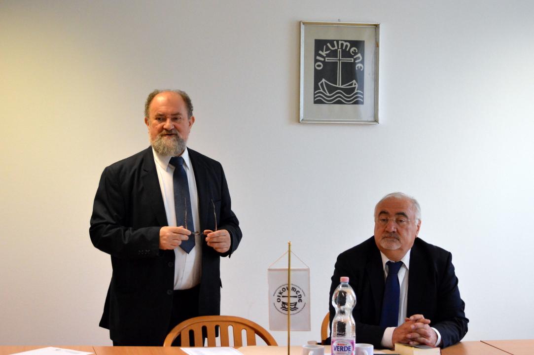 Az intézményes ökumené magyarországi történetéről D. Szebik Imre tartott beszámolót. A nyugalmazott evangélikus püspök, a MEÖT korábbi elnöke öt pontba szedte előadását. „A Kálvin téri református templomban 1943. június 26-án ünnepi istentisztelet keretében alakult meg az ökumenikus tanács egyetemes egyháztanács magyarországi bizottsága. A református egyházat Ravasz László püspök, az evangélikus egyházat Radvánszky Albert egyetemes felügyelő képviselte. Titkárrá Wolf Lajost (később Ordass Lajos) és Pap Lászlót választották” – mondta D. Szebik Imre. Az 1949–1956 közötti időszakról a nyugalmazott püspök kifejtette, hogy „az 1948-ban történt hatalomátvétel a kommunista diktatúra kezdetét jelentette, amely az egyházak, társadalmi szervezetek és nem állami intézmények helyzetét alapvetően megváltoztatta”. Az Állami Egyházügyi Hivatal (ÁEH) felügyelete alá vette az egyházakat, a felekezetek tagjai csak az ÁEH engedélyével utazhattak külföldre. Az 1957–1967 közötti időszakról a MEÖT korábbi elnöke elmondta, hogy a hazai ökumené ebben az időben bővült, újraindult a Theologiai Szemle, tartottak egyetemes imaheteket, valamint számos, felekezeteket összefogó segély- és kölcsönakció valósult meg. Az 1968–1988 közötti időszakról a nyugalmazott püspök a diákmegmozdulások politikára gyakorolt hatását említve kiemelte, hogy az az egyházra is kihatott: „a fellazult politikai környezetben nagyobb mozgástér nyílott az egyházak szolgálatára”. Magyarországon új protestáns bibliafordítás jelent meg, valamint új énekeskönyvet is kiadtak, de számos, társadalmi kérdéssel foglalkozó etikai és teológiai konferencia is megvalósult. A rendszerváltás évéről és az azt követő időszakról a nyugalmazott evangélikus püspök többek között az ÁEH megszűnését, az ökumenikus tanács bővülését, az egyházak kártalanítását emelte ki.