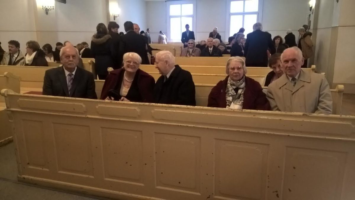 Tudjuk, hogy ez nem érdem, éppen ezért hálás szívvel készültünk mind az öten erre a jeles jubileumi napra. Név szerint: Fehér Klára és Laczkovszki János, ők ketten most is a Nap utcai gyülekezet tagjai, jelen volt még Cine Erzsébet a József utcai gyülekezetből, Császár Sándor Pestszenterzsébetről és Simon Ernő Újpestről.