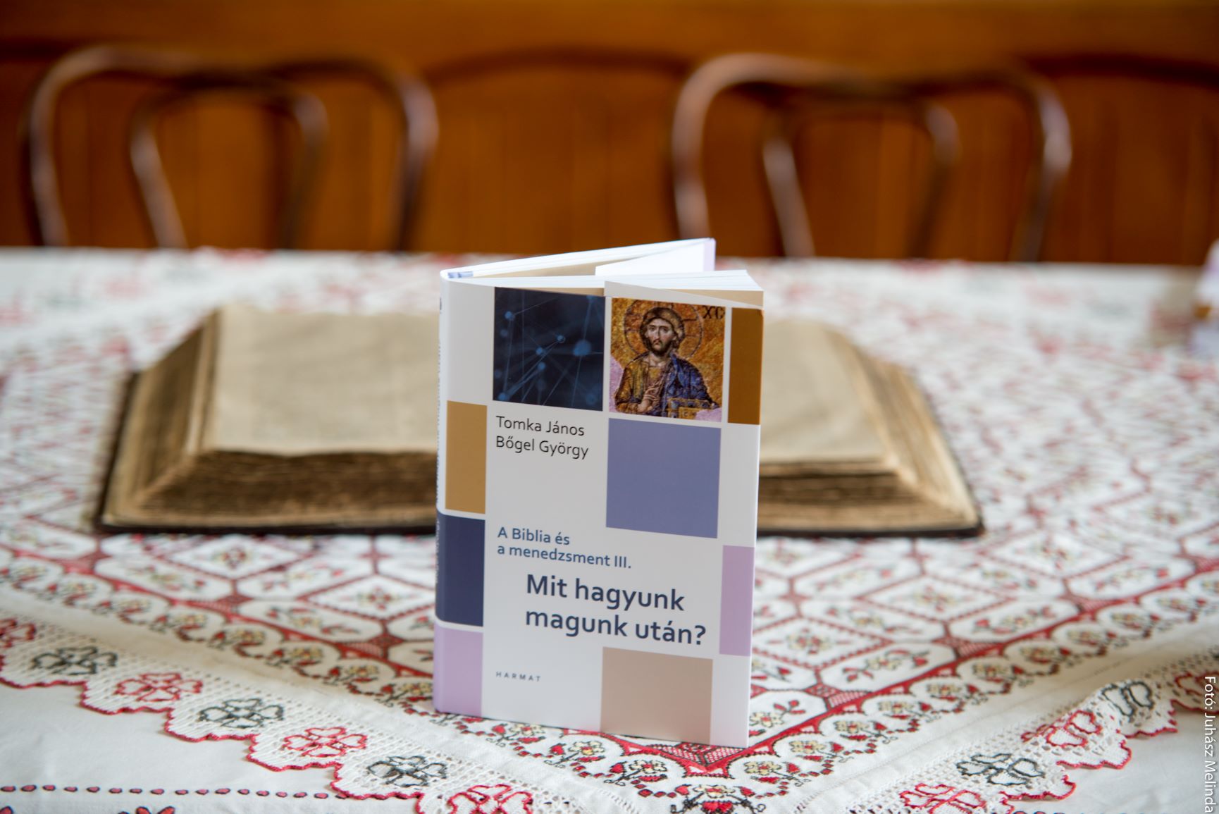 A beszélgetés alapjául a Harmat Kiadó gondozásában a dr. Tomka János és dr. Bőgel György szerzőpáros Mit hagyunk magunk után? címmel most megjelent könyve szolgált. A Biblia és a menedzsment-trilógia harmadik kötete rendhagyó módon a modern kori vezetői dilemmák bemutatása mellett bibliai történetek tanulságaival kíván segítséget nyújtani a döntési helyzetekben.