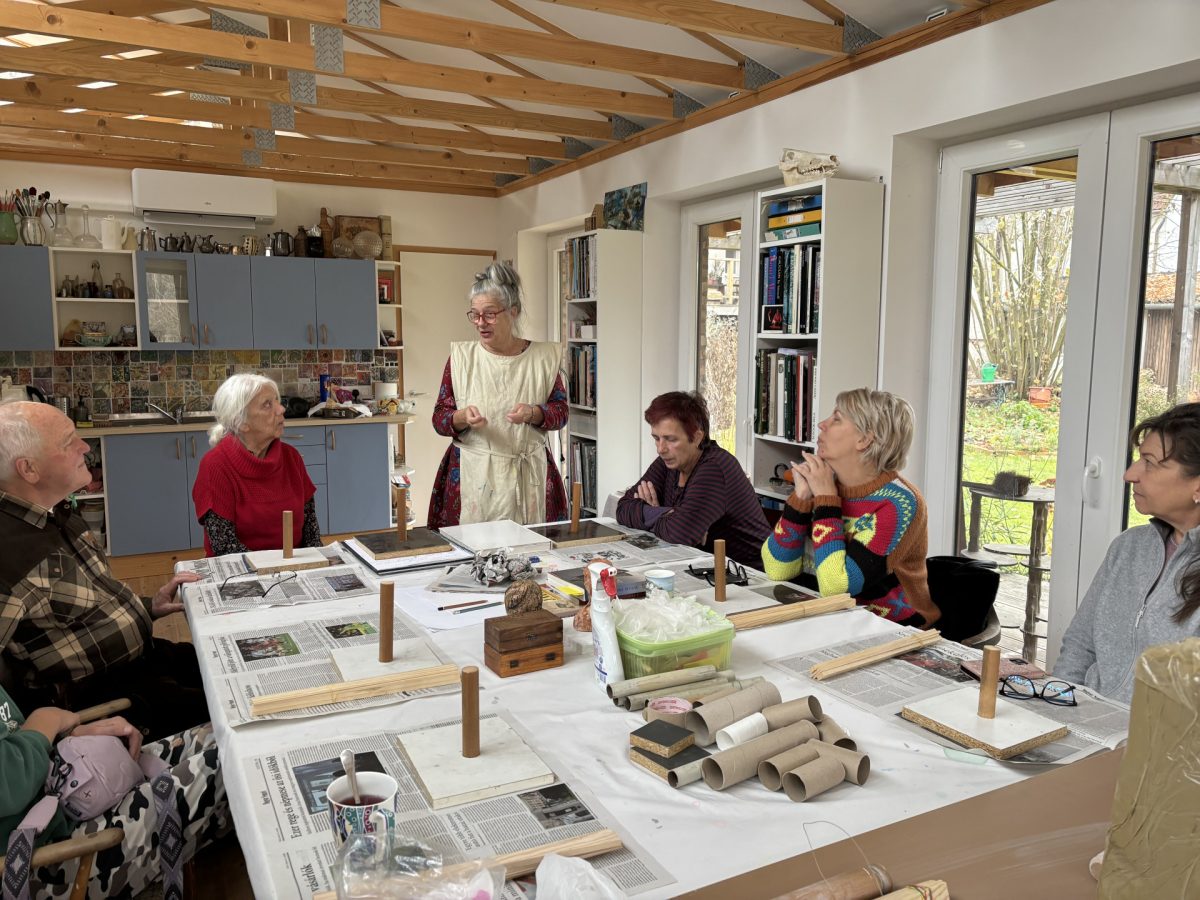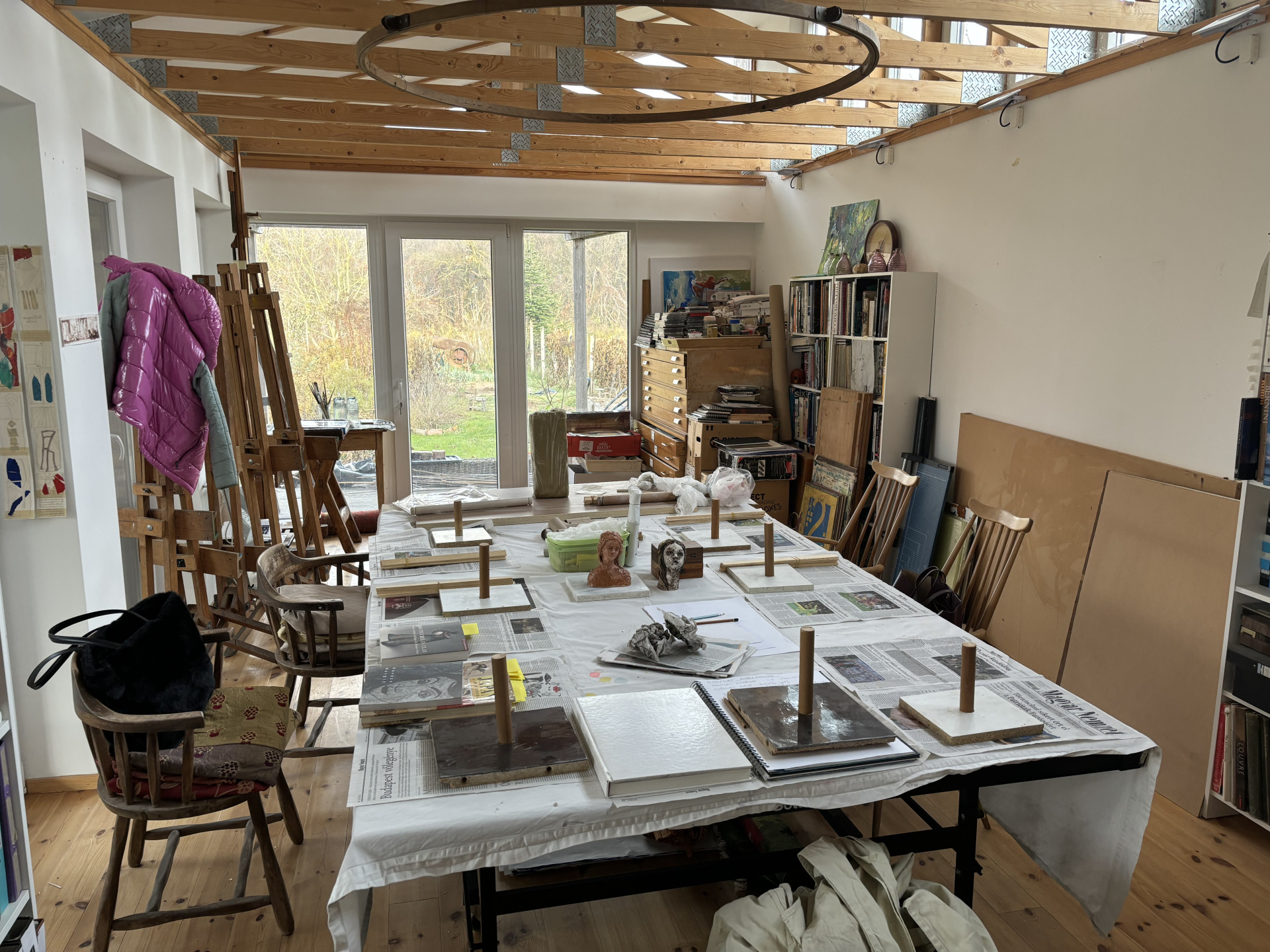 Mindig is úgy volt, hogy vissza fogok jönni. Csak azt nem lehetett tudni, hogy mikor és milyen körülmények között. Paul, a drága férjem, tulajdonképpen sose érezte magát igazán otthon Skóciában. Már amikor először eljött velem Magyarországra, akkor azt mondta, hogy ő itt van otthon. Hosszú ideig piszkált azzal, hogy ne menjünk vissza Skóciába, míg végül úgy alakult a helyzet, hogy minden összejött ahhoz, hogy itt maradjunk. Nyugdíjba mentem, a fiaim már mind elvégezték az egyetemet, Paul jönni akart, és az egésznek a betetőzése, hogy édesanyámnak szüksége lett a segítségemre. Nagy dolog volt, hogy édesanyám szomszédja eladta nekünk a házát, amely tulajdonképpen a korábbi családi fészkünk volt, egy műemlék ház. Édesanyám későbbi férje Karsai Zsigmond festőművész, a népművészet mestere, egy fantasztikus ember volt, az ő házában lakunk. Építészmérnök a férjem, hát mit mondjak, fantasztikus! A kertben épített nekem egy műhelyt, ahol próbálom az én dolgaimat csinálni, de leginkább kurzusokat vezetek, amelyeken sokféle technikával dolgozunk.