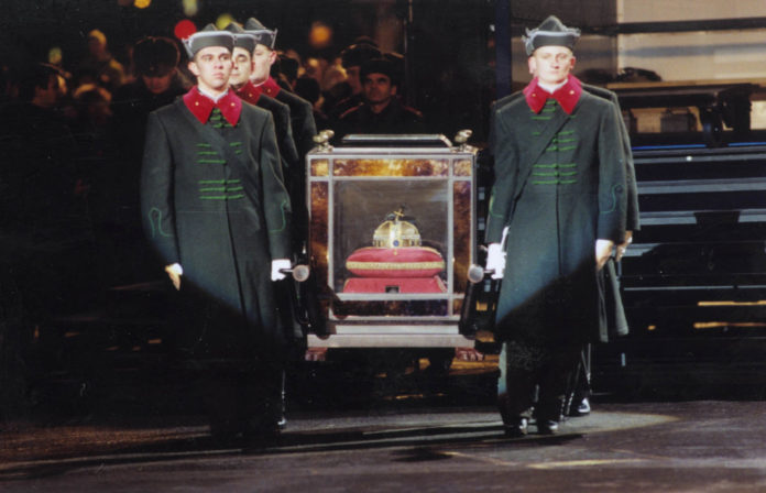 A koronázási jelvények átvételéről szóló hivatalos elismervényt Apró Antal, az Országgyűlés akkori elnöke írta alá. Az ereklyéket csekély restaurálást követően a Magyar Nemzeti Múzeumba állították ki, és egészen 2000-ig ott is őrizték, mígnem az első Orbán-kormány alatt az Országgyűlés kupolatermébe költöztették a szakrális értékeket.