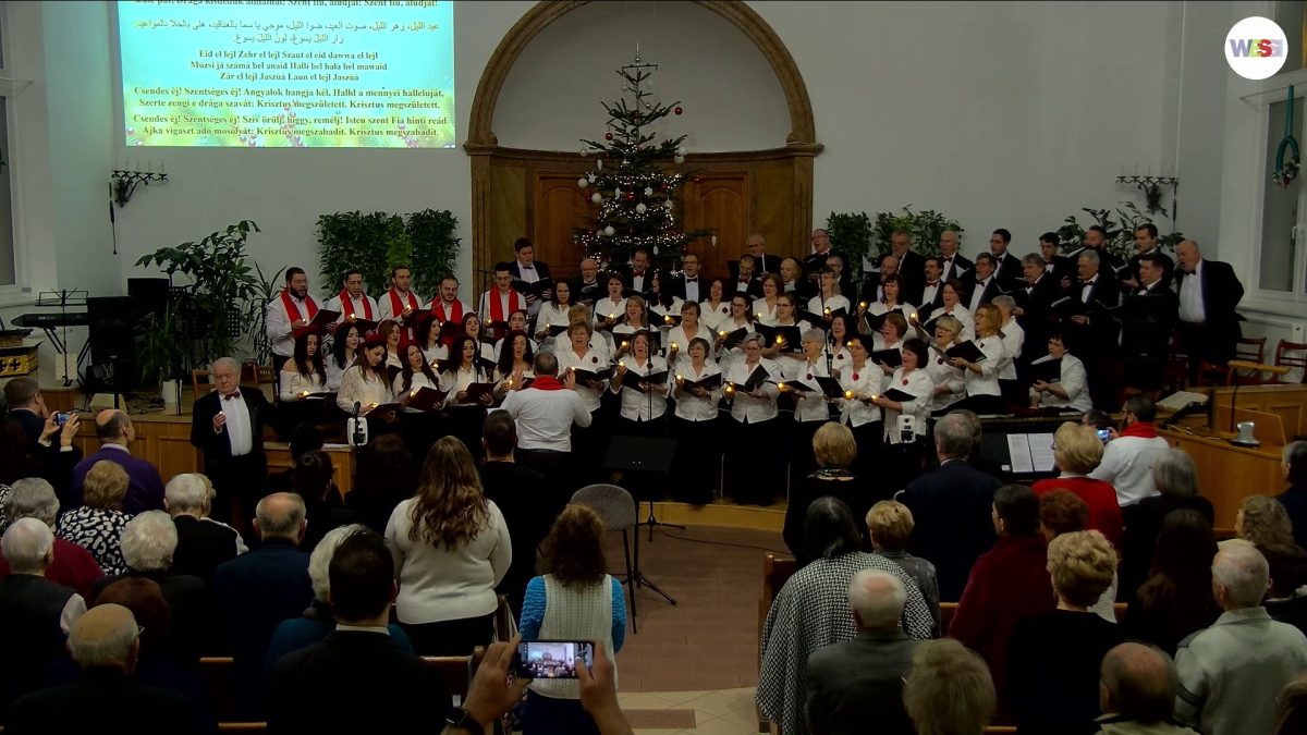 Végül az egész gyülekezet a Szent Rita kórus és a Baptista Központi Énekkar vezetésével a Csendes éjt énekelte el Beharka Pál feldolgozásában. Az első versszakot magyar, a másodikat arab, a harmadikat magyar nyelven énekeltük el.