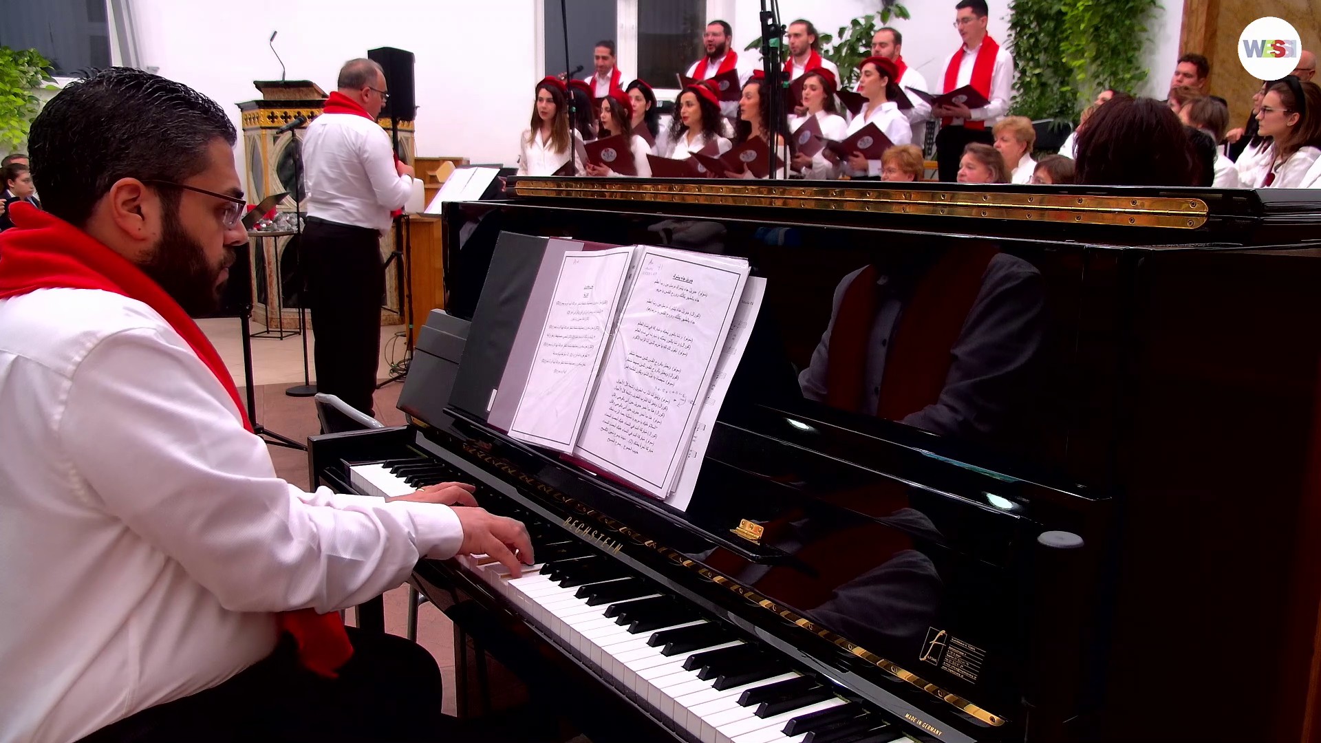 A vers után újra az énekesek szolgálata következett. A Szent Rita kórus karvezetője, Michel al Ain testvér köszöntötte a gyülekezetet. Elmondta, hogy a kórus négy éve kezdte el liturgiai szolgálatát a templomban. Először ketten voltak, de erős lélekkel indultak, és jelenleg huszonhárman énekelnek együtt. A szolgálat szeretete és az Isten iránti elkötelezettség tartja őket össze. A karácsony és a szeretet üzenetét a kórus tagjai a hangjuk által szeretnék eljuttatni mindenkihez. Énekeik szövegét lefordították, így akik nem beszéltünk arabul, magyar nyelven követhettük azok üzenetét.