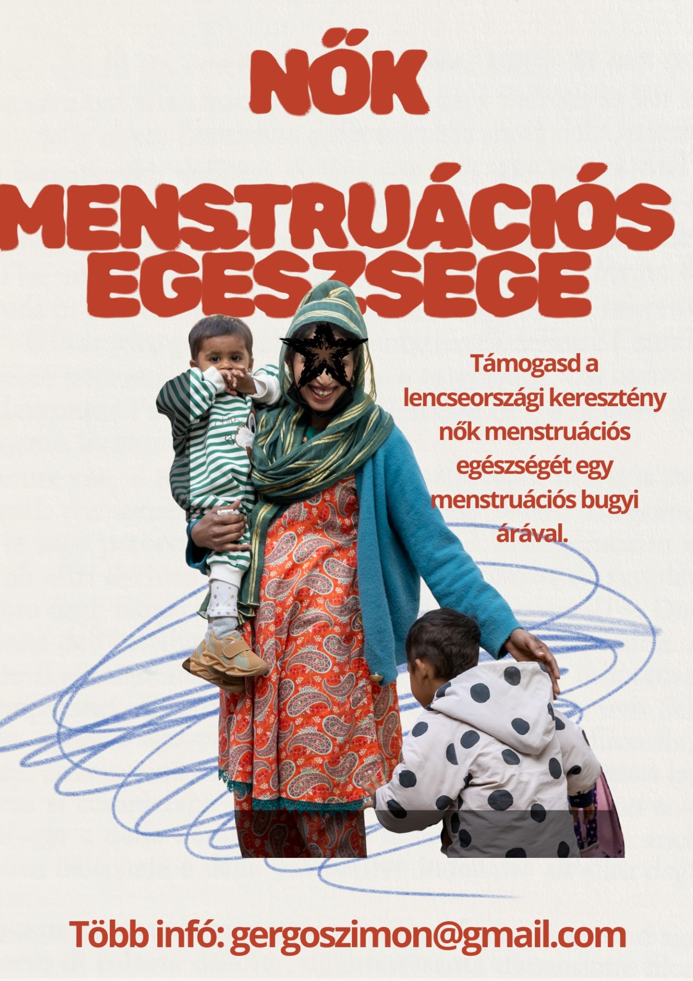 Lencseországban jelenleg is több millió rabszolga él, 60% gyermek és nő. Sajnos sokuk menstruációs szegénységben él, rossz higiéniai körülmények közt, mi több, komoly fizikai munkát végezve a ciklusuk minden napján. Szeretnénk ezeket a hölgyeket lelkileg bátorítani és gyakorlatban is segíteni. Mosható menstruációs fehérneműt és higiéniai termékeket szeretnénk számukra vásárolni. A célunk 180 db menstruációs fehérnemű, ami 60 nőnek könnyítené meg a menstruációját. Ha szeretnél te is részt venni ebben a projektben, akkor keress minket a plakáton látható címen!