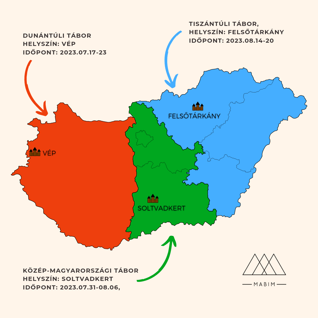 Ahogy már láthattátok, idén nem egy nagytábor lesz, hanem három regionális tábor, melynek időpontjai és helyszínei: