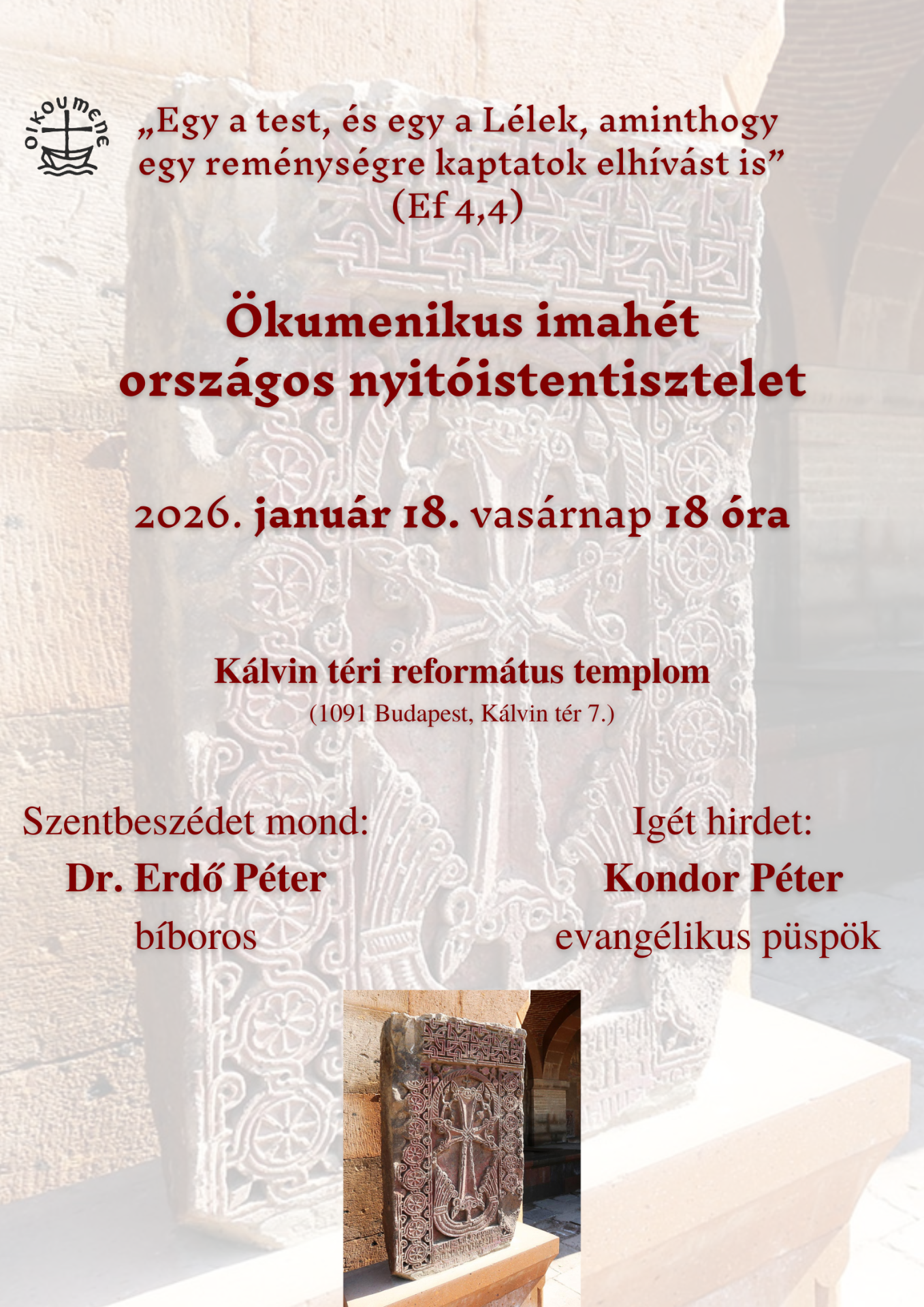 A Magyarországi Egyházak Ökumenikus Tanácsa (MEÖT) 2026. január 18–25. között szervezi az ökumenikus imahetet.
