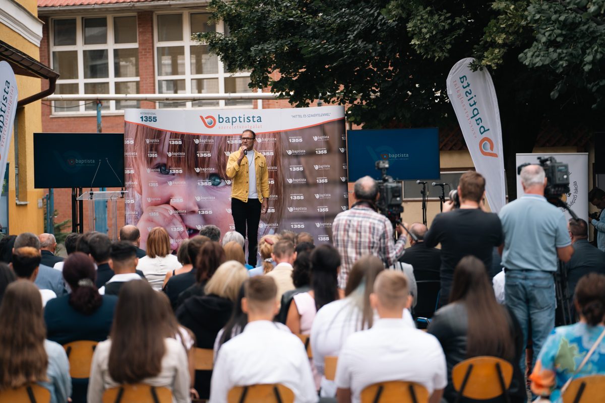 A baptista iskolák 2023/2024-es országos tanévnyitójának csütörtökön a debreceni Diószegi Sámuel Baptista Technikum és Szakképző Iskola adott otthont. Az eseményen velünk volt Tasó László országgyűlési képviselő, Pajna Zoltán, Hajdú-Bihar vármegye közgyűlésének elnöke, dr. Puskás István, Debrecen alpolgármestere. A baptista közösséget mások mellett Papp János egyházelnök és dr. Szilágyi Béla, a segélyszervezet elnöke képviselte.