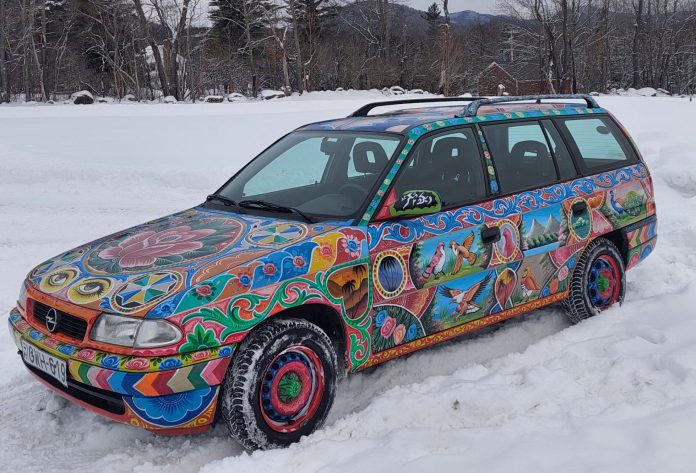 Ez a rossz öreg autó nemcsak fel lett műszakilag újítva, hanem 13 000 km-t megtett két kontinensen, elment a világ másik felére, és haza is jött onnan a saját lábán. És ott teljesen megváltozott: Lencseország kulturális nagykövete, Ali Salman Anchan úr háromfős csapatával kézbe vette és négy napon át kézzel, ecsettel átfestette, ottani motívumokba öltöztette újra a kocsit. Gyönyörű lett! A szó szoros értelmében újjászületett, megváltozott, értéktelenből értékes lett. A tükrökön urdu nyelvű felirat díszeleg: „Nézz rá szeretettel!”