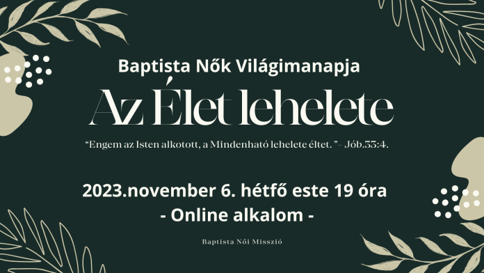 2023. november 6-án, hétfő este 19 órakoronline imádságra hívunk benneteket. Csatlakozzatok ti is, és imádkozzunk együtt a világszerte imádkozó baptista nők népes táborához!