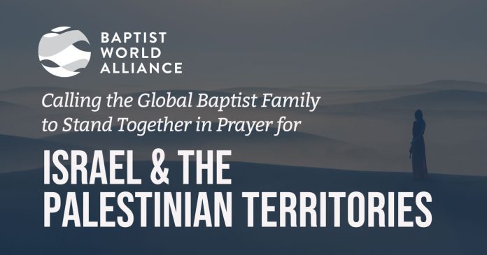 Buzgó imára kérnek minket az igazságos békéért Izrael és a palesztin területek baptista közösségei. Ezek közé tartozik a 17 gyülekezetet számláló Izraeli Baptista Gyülekezetek Szövetsége, valamint a palesztin területeken található 13 baptista gyülekezetet képviselő Szentföldi Helyi Evangéliumi Gyülekezetek Tanácsa. Utóbbinak egy gázai baptista gyülekezet is tagja.