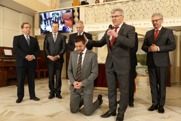 Az apostoli hitvallás után, melyet Papp János egyházelnök vezetett, közbenjáró imádsággal szolgált Steinbach József református püspök.