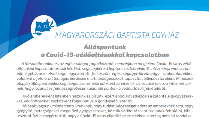 Bibliai meggyőződésünk, hogy Jézus Krisztus visszajövetele egyre közelebb van, de a szóban forgó vakcináknak nincs közük a Jelenések könyvében említett „fenevad bélyegéhez” (Jel 13,16–18). A védőoltásokat tehát – a sok más védőoltáshoz hasonlóan, amelyeket akár kötelezően, akár szabadon választva korábban már megkaptunk – elsősorban egészségügyi kérdésnek tekintjük, mellyel az emberiség korábbi járványaihoz hasonlóan igyekszünk a mostani veszélyhelyzetet megoldani. Megértjük az emberek óvatosságát a jelenlegi védőoltásokkal kapcsolatban azok kifejlesztésének és tesztelésének gyorsasága miatt. Azonban látni kell, hogy a mostani vakcinafejlesztések során nagyon komoly előzetes munka és szakmai tudás állt rendelkezésre, valamint a gyógyszercégek és kormányok összefogása alapján szinte korlátlan anyagi források is segítették a gyorsabb fejlesztéseket. Az is segítséget jelent, hogy az Európában, illetve Magyarországon engedélyezett védőoltások biztonságosságáról és hatásosságáról mára a világszerte folyó oltások alapján sok millió ember tapasztalata is rendelkezésre áll.