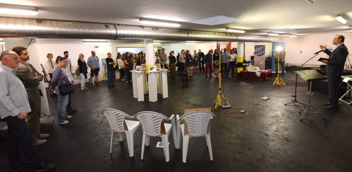 Az állandóan változó időjárási körülmények okán szokatlan helyszínen, a Magyarországi Baptista Egyház mélygarázsában került megrendezésre a Comenius-csoport alkotóinak kiállítása július 25-én, szombaton.