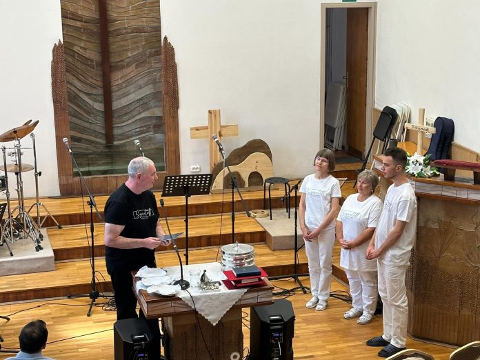 Meghitt és felemelő hangulatban telt a bemerítési istentisztelet 2025. június második vasárnapján a győri Hajnalcsillag Baptista Gyülekezetben. Az ünnepi alkalmon öt lélek vallotta meg nyilvánosan a hitét, döntésüket bemerítkezéssel is megerősítve.