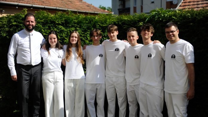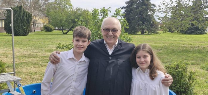 Szentes, 2025. április 13. Kellemesen meleg nap. Különleges ajándéka az Úrnak, mert a medence a szabadban áll. Igaz, hogy a termálvíz még túl meleg is, hűlnie kell. De a simogató napsugaraknak mindenki örül. Hiszen tavasz ébred a gyülekezetben is, két fiatal egy családból, 13 és 15 évesek kérték a Krisztus-követés pecsétjeként a bemerítésüket. Kis-Hajdu Janka és Sámuel bizonyságot tett arról, hogyan találta meg őket Isten elhívása, hogyan fontolgatták az „igen” kimondását, hogyan kezdték meghallani a Hangot. Hogyan fedezték fel az újjászülő Úr hatalmát az életükben, hogyan alakul át bennük minden, a testvéri hátba veregetések mennyire szelídülnek, a baráti kapcsolatok hogyan változtak. S habár a fiatalok csak egy éve tapogatják lábukkal a keskeny út bukkanóit, már elég éretten fogalmazták meg, hogy az egyetlen értelmes ösvénynek ezt tartják, amely az Életre visz.