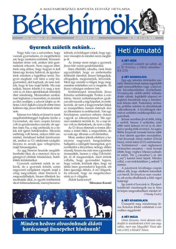 Újpesti Baptista Gyülekezet, 2016. december 25. Igét hirdet: Mészáros Kornél, lelkipásztor.