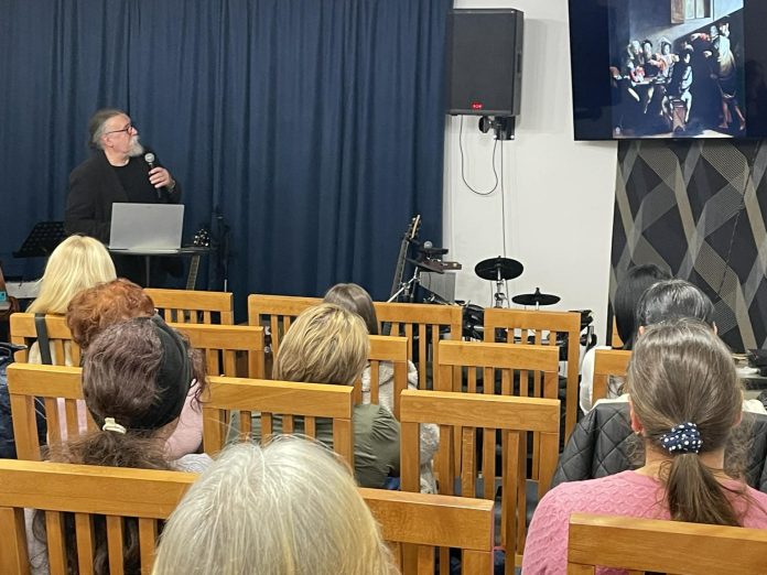 November 15-én reggel a Baptista Művészeti Napok keretén belül férjemmel, Mikes Balázzsal Kárpátaljára, Beregszászra indultunk. Balázs Caravaggio Szent Máté elhívása című festménye elemzésével hirdette az evangéliumot. Az úton tele volt a szívünk hálával, látva az őszi szántásokat, a termékeny talajt. Őzeket, egerészölyveket, fácánokat pillanthattunk meg a gyenge őszi napsütésben.