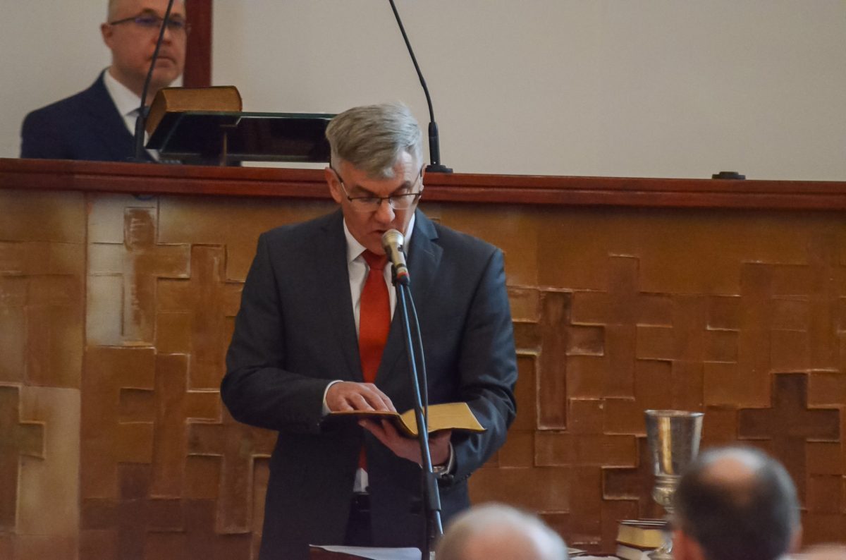Az ünnepi igehirdetést dr. Várady Endre testvér tartotta a Péter apostol leveléből választott textus (1Pt 5,1–5) alapján. Igehirdetésében hangsúlyozta a presbiterek fontos vezetői feladatát. A presbiteri szolgálat fontosságát belehelyezte a gyülekezet jelenlegi helyzetébe (nincs lelkipásztor). Fontos magyarázatot hallottunk a gyülekezetvezetés, a navigálás, a kormányzás feladatáról, amely ebben a helyzetben csapatmunka. Szükséges a belső munkamegosztás, egymásra figyelés, de legfőképpen az Isten igéjére mint iránytűre való hagyatkozás. Várady testvér beszédében számos idevonatkozó bibliaverset sorolt fel. Igehirdetését ünnepi jókívánsággal fejezte be, amelyet a Filippi levél üzenete alapján fogalmazott meg, tanácsolva: ugyanarra törekedjetek, mert