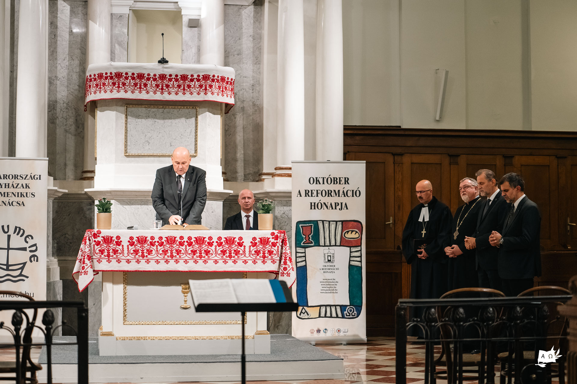 Ünnepi istentisztelettel vette kezdetét a Magyarországi Egyházak Ökumenikus Tanácsa (MEÖT) szervezésében évente megrendezésre kerülő Október a Reformáció Hónapja programsorozat a Kálvin téri református templomban 2024. október 1-jén.