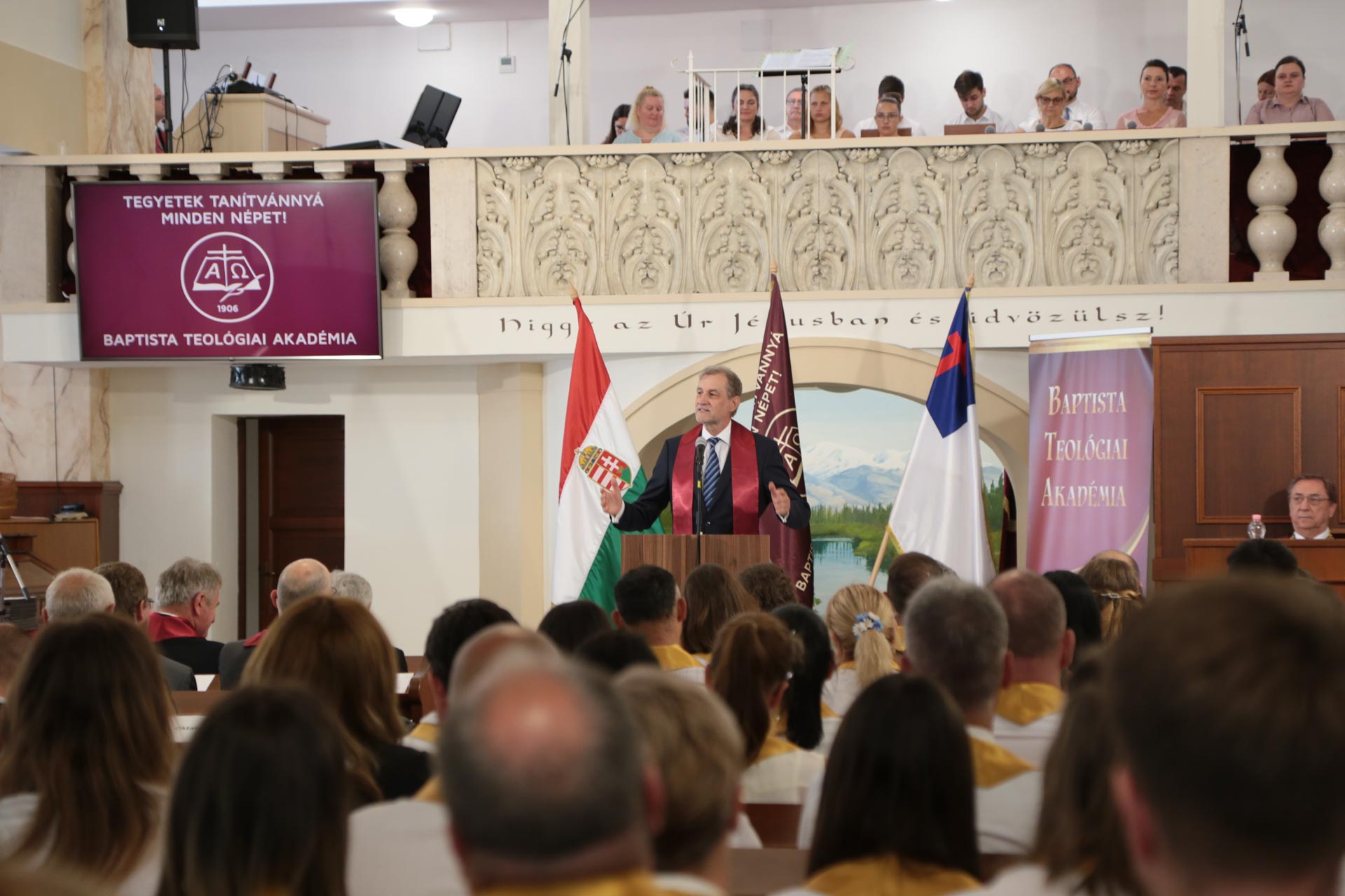 Az évzáró ünnepélyességét a BTA kórusának csodálatos zenei szolgálata emelte Kónyáné Puskás Laura vezetésével és dr. Garai Zsolt tanszékvezető orgonajátékával.