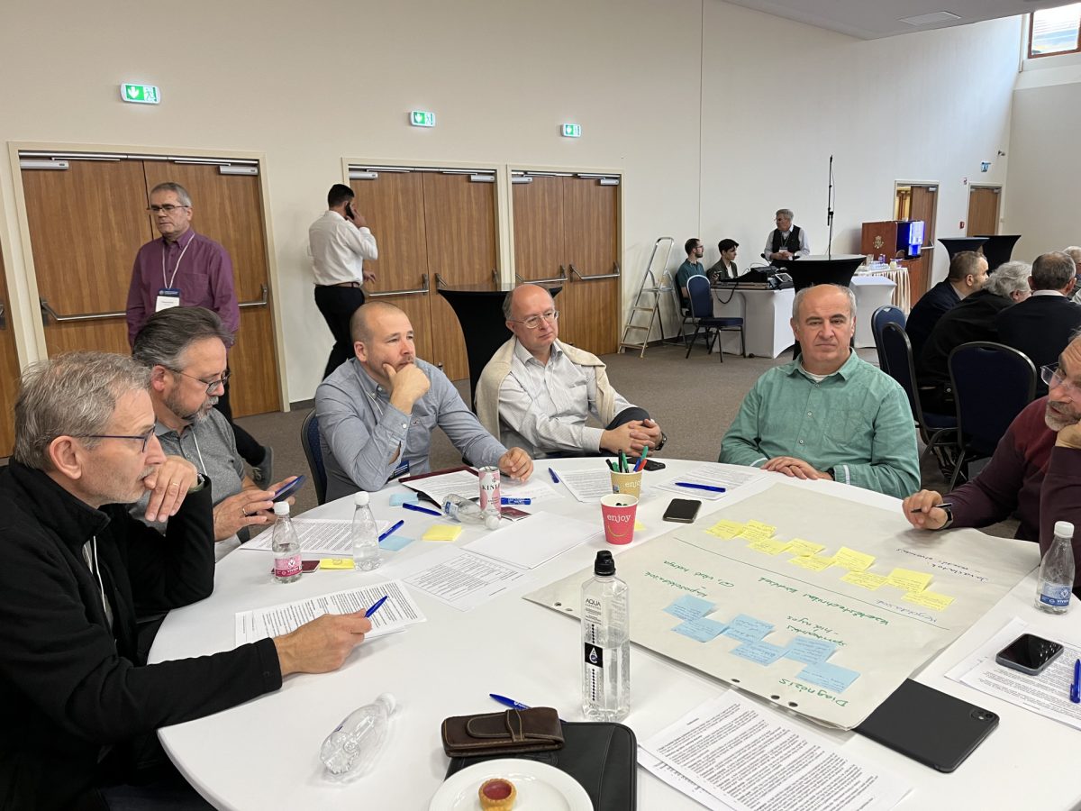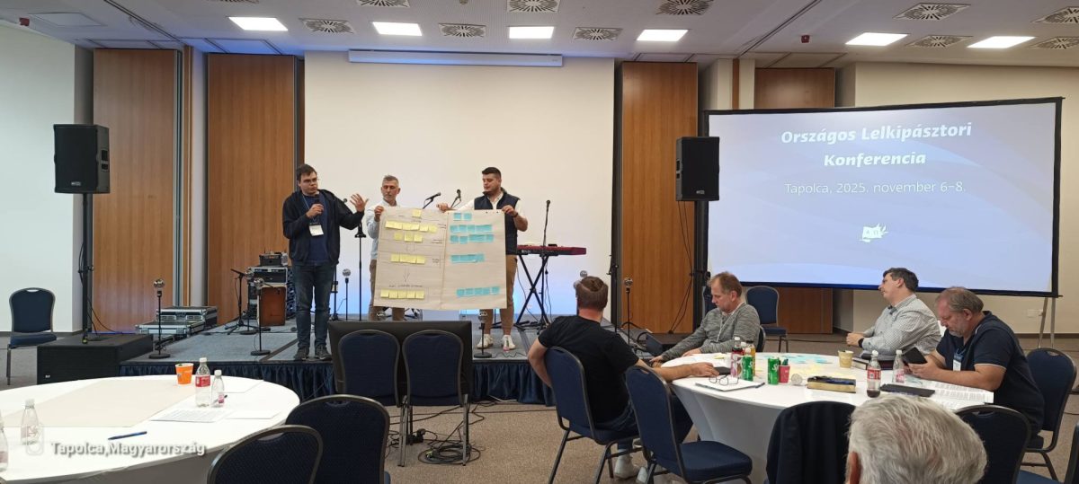Az elhangzott gondolatokat kis csoportokban beszéltük tovább. Egy fiktív gyülekezet vezetőségi nehézségeit elemeztük és közben saját gyülekezeteink működési nehézségeivel is szembesülhettünk.
