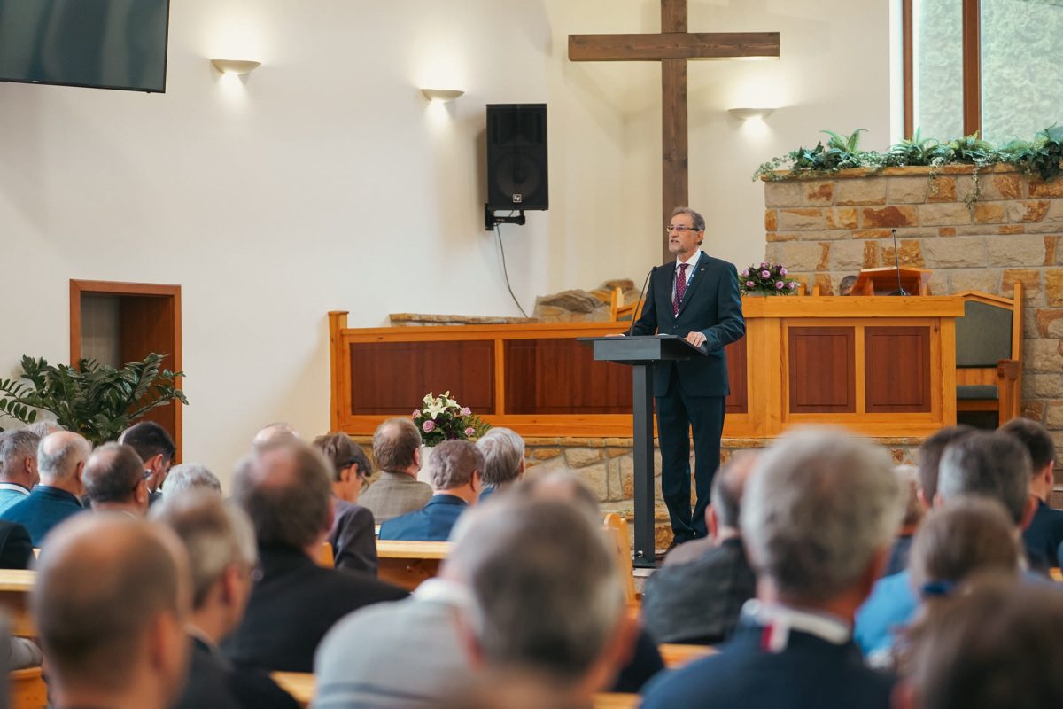 A Tóth Zoltán gyülekezetvezető vezette imaközösséget követően Bereczki Lajos, alkotmányügyi tanácsos nyitotta meg az alkalmat, aki egyben a délelőtti program levezető elnöke is volt. Papp János egyházelnök kiegészítésében beszélt arról, hogy a közvetlen vezetői feladatok és szolgálatok mellett a különféle testületekben való részvételen túl négy fő területet koordinál. A missziói igazgatóval, Durkó István testvérrel együtt végzik a missziói, közösségi élet területének mozgatását, irányítását, és hálásak azért, hogy az úgynevezett hagyományos Misszióbizottság mellett az elmúlt időszakban létrejött az Intézményi Missziói Bizottság, amelyen keresztül az intézményi területen is sokféle szolgálat működhet. Egy másik nagy terület a külmisszió, külkapcsolatok, külügyek területe, amelyben Téglási Lajos külügyi szaktitkárral együtt igyekeznek építeni egyházi közösségünk kapcsolatrendszerét, hatáskörét és hatáslehetőségeit. A harmadik nagy terület az egyházi külső és belső kommunikáció területe, amelyben Boros Dávid kommunikációs szaktitkár testvérrel végzik közösen a szolgálatot, és azokkal, akik ebben a csapatban benne vannak. A negyedik terület pedig az oktatási, köznevelési terület, amely egyházunk életében az elmúlt bő évtizedben kiszélesedett, ebben pedig Paróczi Zsolt oktatási szaktitkárral együtt végzik a különféle szolgálatokat. Jelentős előrelépések történtek mindezeken a területeken, de megváltozott, formálódott az elmúlt esztendőben – akár a jubileumi emlékév kapcsán is – a közösségünk nemzetközi kapcsolatrendszere és geopolitikai jelentősége azzal, ahogyan benne vagyunk a közép-európai baptista közösségek életében, vagy akár az Európai Baptista Szövetség, a Baptista Világszövetség „vérkeringésében”. Egyházunk elnöke megerősítette a jelentésben részletesen bemutatott látását, meggyőződését, elveit, amiket képvisel és szeretné, ha ez formálná a közösséget. Ennek elfogadása fontos visszajelzés, megerősítés volt a vezetés számára, és egyben felhatalmazás arra, hogy ezeket az értékeket képviselni tudja itthon és külföldön egyaránt. Ezek vonatkoznak az egyházunk társadalmi szerepvállalására a jelenlegi világhelyzetben felmerülő bibliai, etikai kérdések és zavarok kapcsán, amikor is világos álláspontot és válaszokat kell megfogalmazni sok mai aktuális kérdésre.
