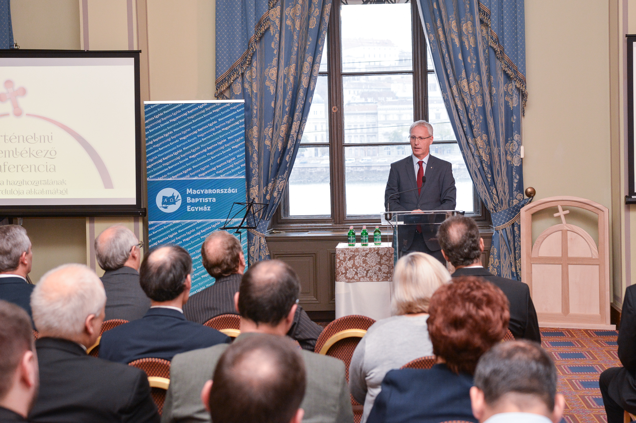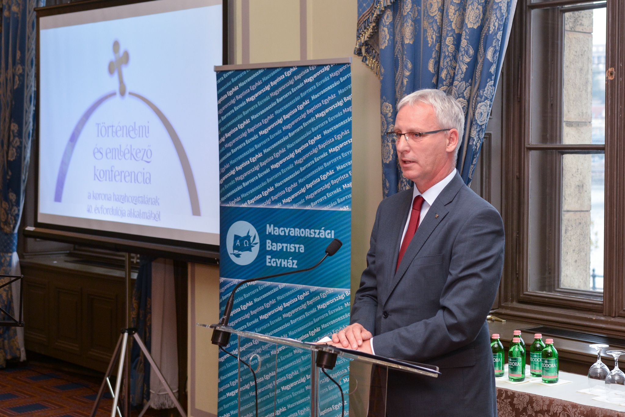 A Magyar Tudományos Akadémia Duna-parton fekvő impozáns épülete méltó otthont adott a rendezvénynek, amelynek megvalósulását a magyar állam is támogatta. A konferenciát Mészáros Kornél főtitkár testvér nyitotta meg köszöntő beszédével, majd egy archív videót tekinthettek meg a résztvevők a korona hazaérkezéséről. Papp János egyházelnök ünnepi beszédében kiemelte, mennyi mindenért lehetünk hálásak, és mire tanít, mire kötelez bennünket Isten hatalmas szeretete és jósága. Soltész Miklós egyházi, nemzetiségi és civil kapcsolatokért felelős államtitkár köszöntötte a több mint 80 fős konferencia meghívott résztvevőit, és megköszönte a baptisták nemzetért végzett szolgálatát és helytállását a nehéz időszakokban is. Bár nemzeti ünnepük miatt nem lehetett jelen David B. Cornstein, az Egyesült Államok nagykövete, de hosszú levélben méltatta azokat az embereket és eseményeket, amelyek szorosan összekötik a két nemzetet.