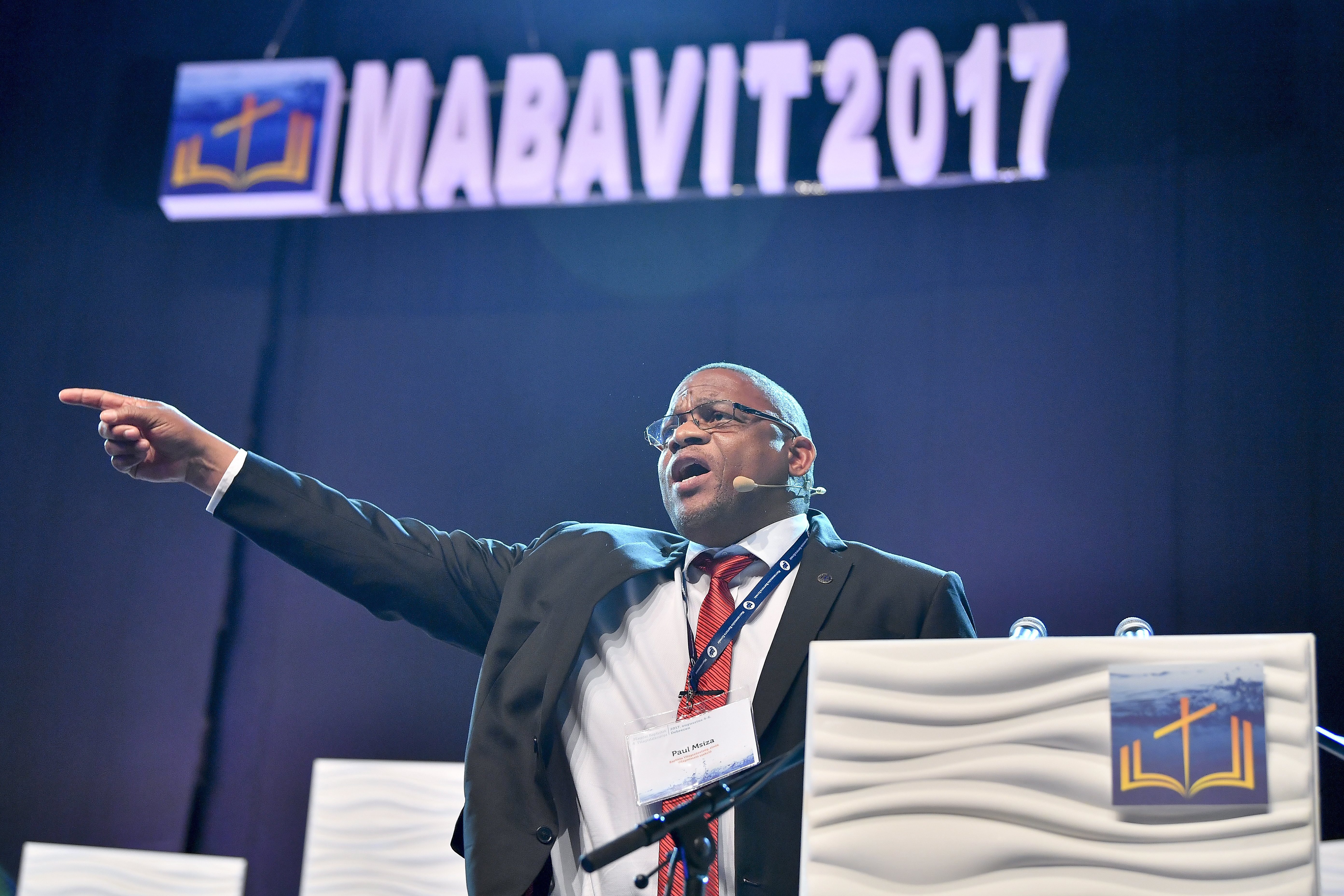 Debrecen, 2017. augusztus 6. Paul Msiza, a Baptista Világszövetség dél-afrikai elnöke beszédet mond a magyar baptisták 4. világtalálkozójának záró istentiszteletén Debrecenben, a debreceni Fõnix Csarnokban 2017. augusztus 6-án. MTI Fotó: Czeglédi Zsolt