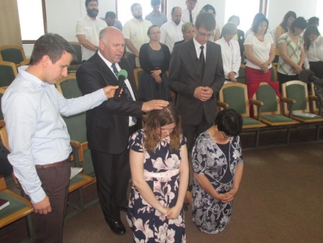 Az átöltözött új hívek a lelkipásztoruk társaságában bevonultak a gyülekezetbe, majd letérdelve a lelkipásztorok előtt azok a fejükre tett tenyérrel áldást mondtak rájuk, befogadva őket a gyülekezetbe.