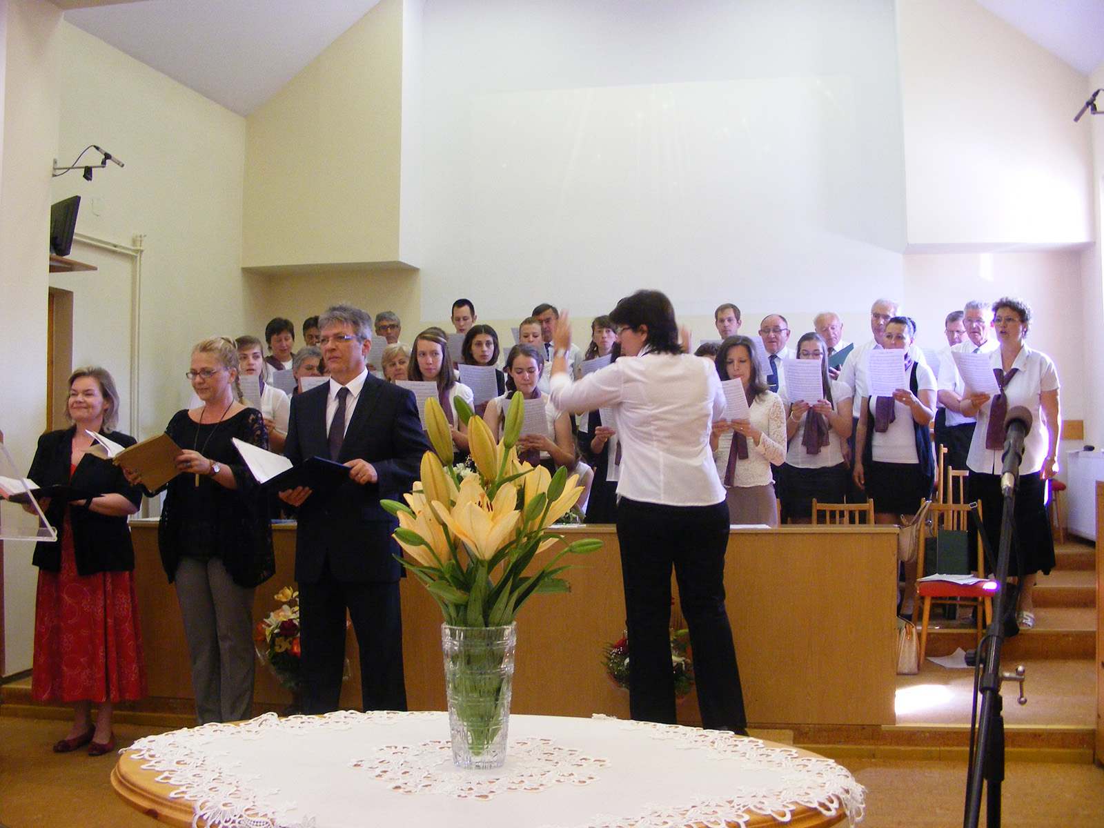 A házaspár, Szabóki Tünde szoprán és Cser Péter basszus, Andreával együtt mély átéléssel énekeltek. Gyülekezetünk énekkara egyszerű kórus, de a képzett énekesekkel a közös szolgálatban eltűntek a különbözőségek. Egy vált fontossá, dicsőíteni az örökkön örökké létező, megváltó Urunkat. Zongorán Tóth Sámuel, a pesterzsébeti gyülekezet zongoristája működött közre. Az énekek után Horváth Zsolt helyi lelkipásztor a 28. zsoltár 7. versét olvasta fel köszönetként az énekesek szolgálatáért.
