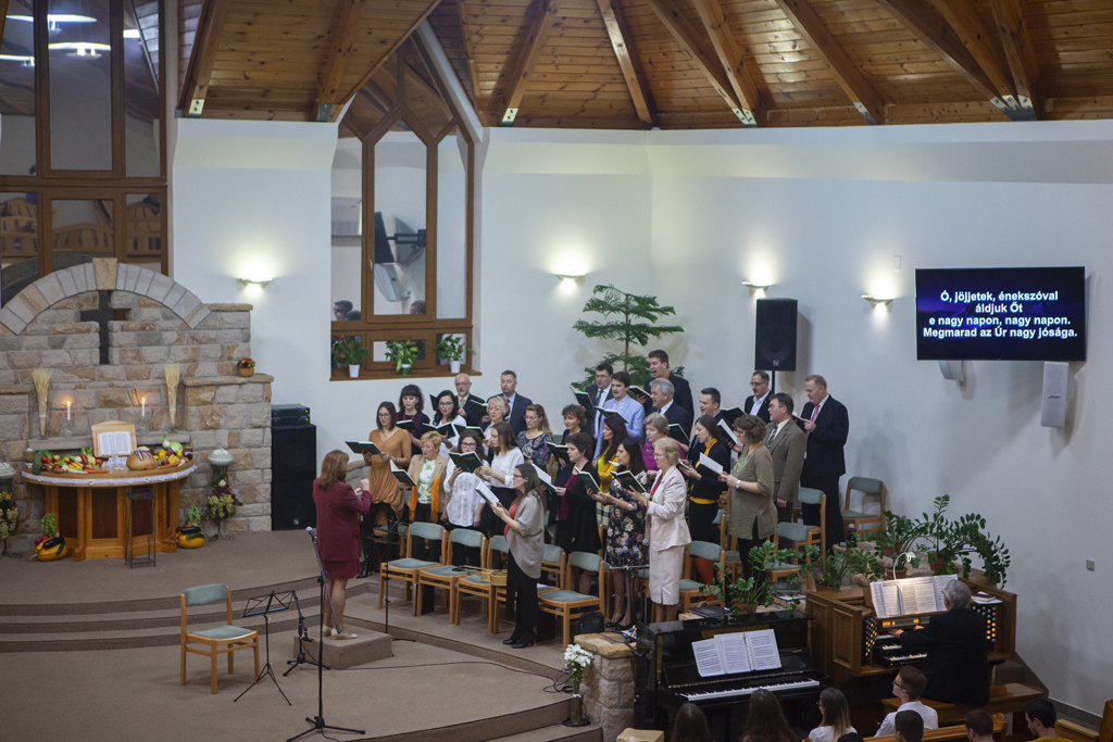 A hála az ének hangjain is felcsendült november 11-én két alkalommal is a Váci Baptista Imaházban. A Kolesza Judit karnagy által vezetett énekkar szolgálatát heteken át tartó rendszeres, örömteli és áldozatos munkával járó próbák előzték meg. Az énekkar változatos, folyamatosan megújuló repertoárt vonultatott fel ezen a napon Tóka Szabolcs orgonaművész orgona-, illetve zongorakíséretével. Elhangzottak dicsőítő zenedarabok G. Young, M. Mcdonald, J. Rutter, W. S. Martin szerzőktől.