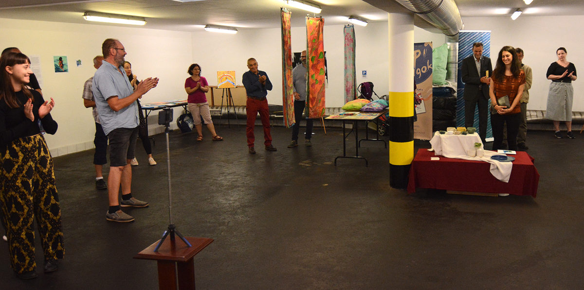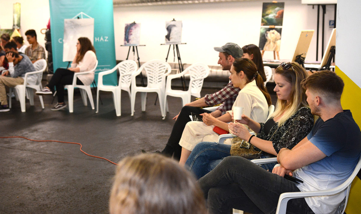 Az állandóan változó időjárási körülmények okán szokatlan helyszínen, a Magyarországi Baptista Egyház mélygarázsában került megrendezésre a Comenius-csoport alkotóinak kiállítása július 25-én, szombaton.