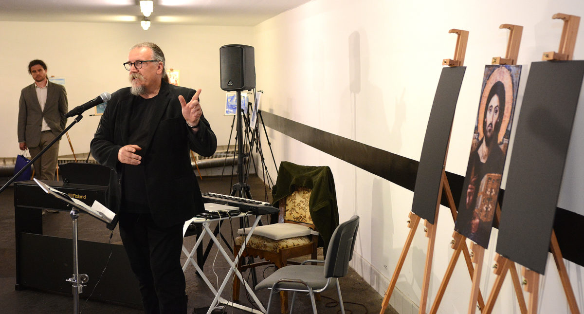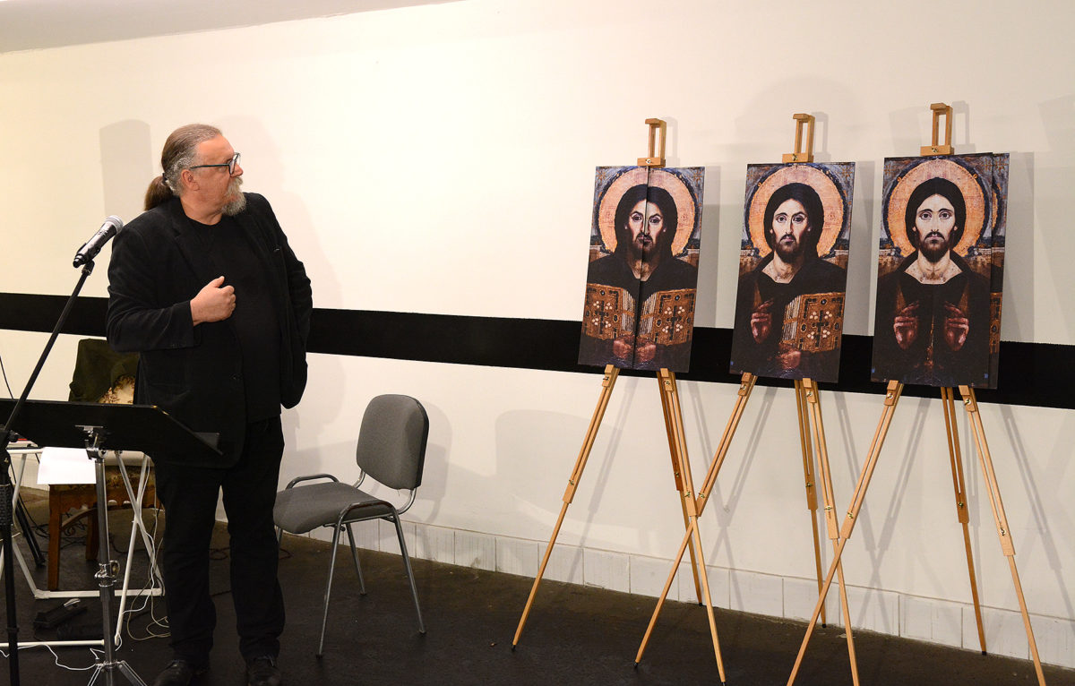 Mikes Balázs teológus, grafikus művészettörténeti kiselőadásában egy Jézus arcát ábrázoló ikon különös nézőpontból való bemutatásával tette érdekfeszítővé a megnyitó perceit.