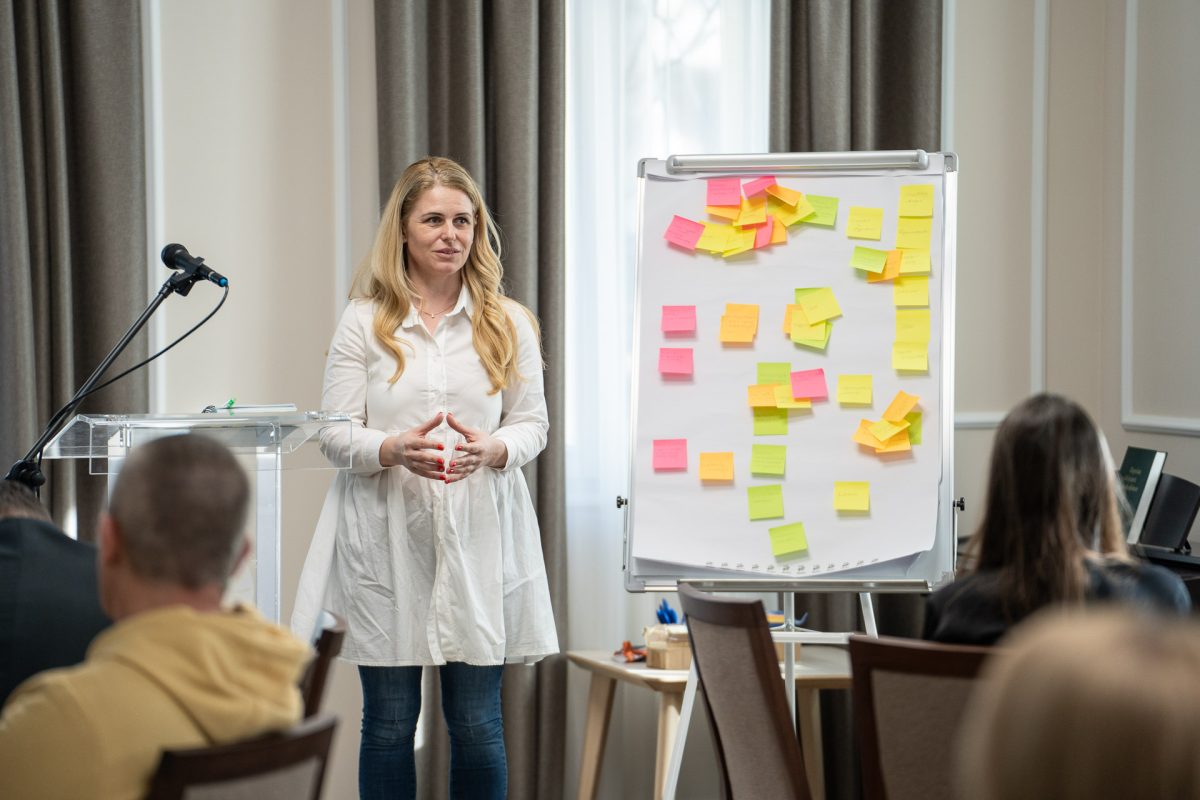 A délelőtti workshopban Prievara Tibor (oktatásfejlesztő, gimnáziumi nyelvtanár) vezetésével problématérképet készítettek a résztvevők, amely segített világossá tenni, melyek azok a területek, amelyeknek a problémáira megoldási módszereket kell keresni.
