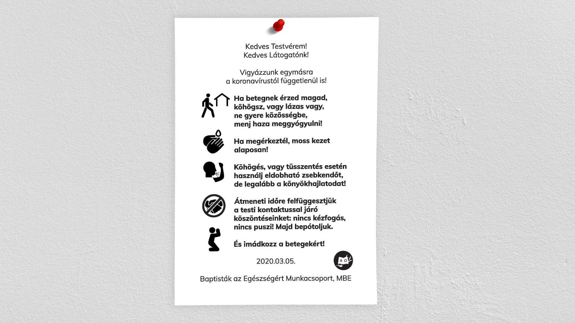 Átmeneti időre felfüggesztjük a testi kontaktussal járó köszöntéseinket: nincs kézfogás, nincs puszi! Majd bepótoljuk.