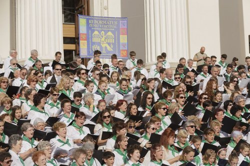 Az ötszáz fős kórust orgonán Szotyori Nagy Gábor, valamint a Jerikó Református Fúvósegyüttes kísérte.